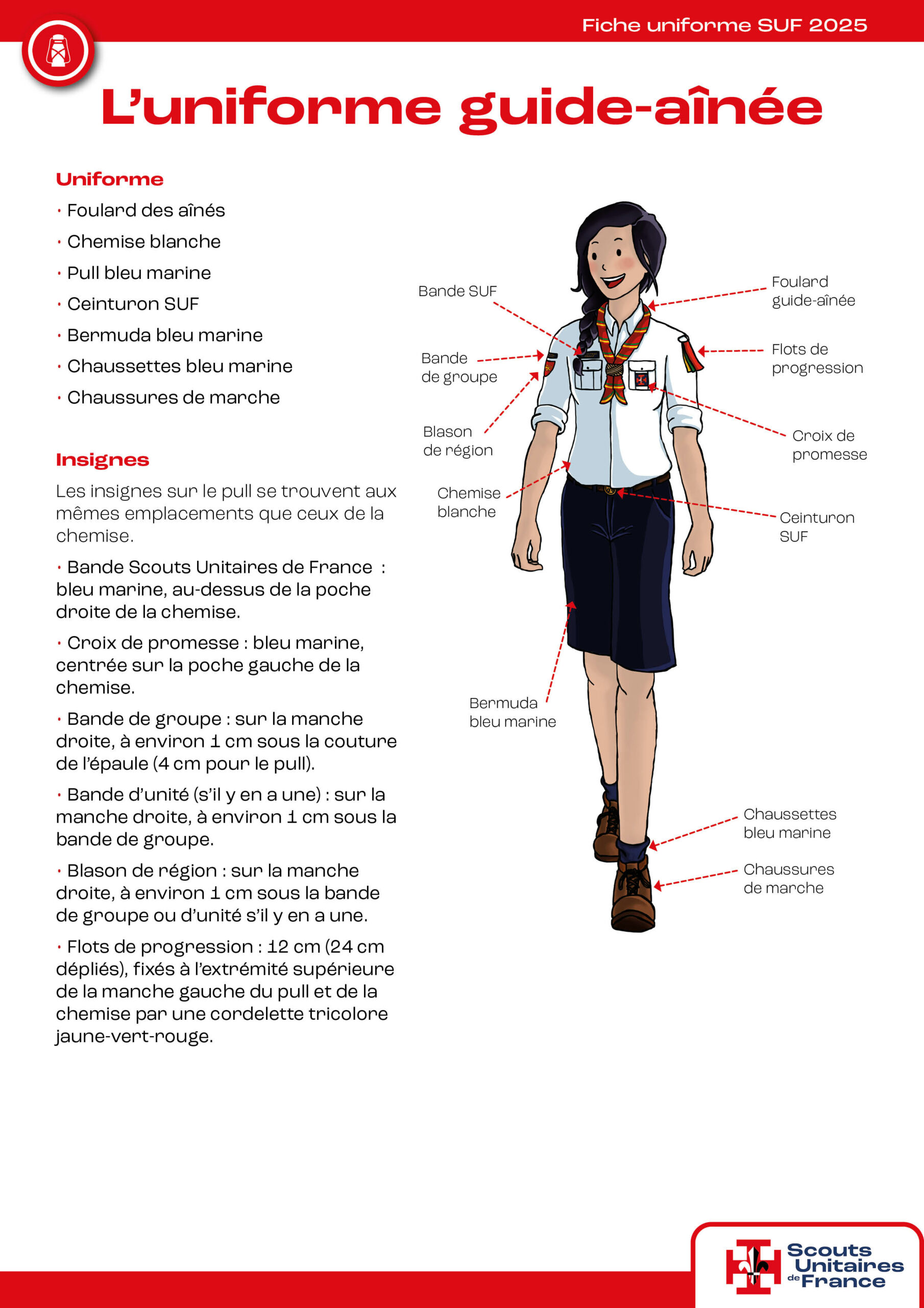 Il est composé d’un bermuda bleu marine, une chemise blanche, un pull bleu marine, le foulard d’aîné. Découvre-le ici !